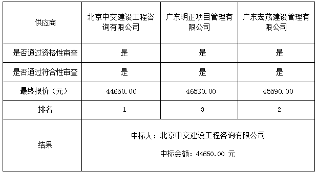 1:中標(biāo)供應(yīng)商名稱北京中交建設(shè)工程咨詢有限公司 法人代表 陳榮輝 地址北京市朝陽區(qū)北苑路170號凱旋城3號樓4層0501